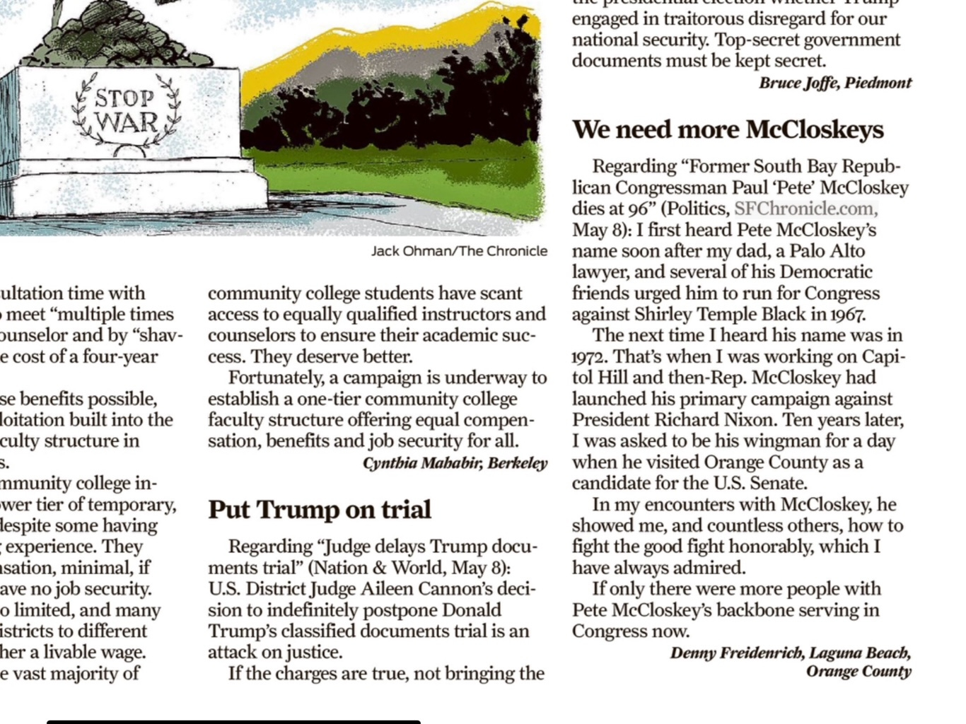 Pete was a very decent, principled person. He shared common ground with my dad and brother. For starters, they all attended Stanford and practiced law in Palo Alto. My hope is you will find today’s letter of interest.