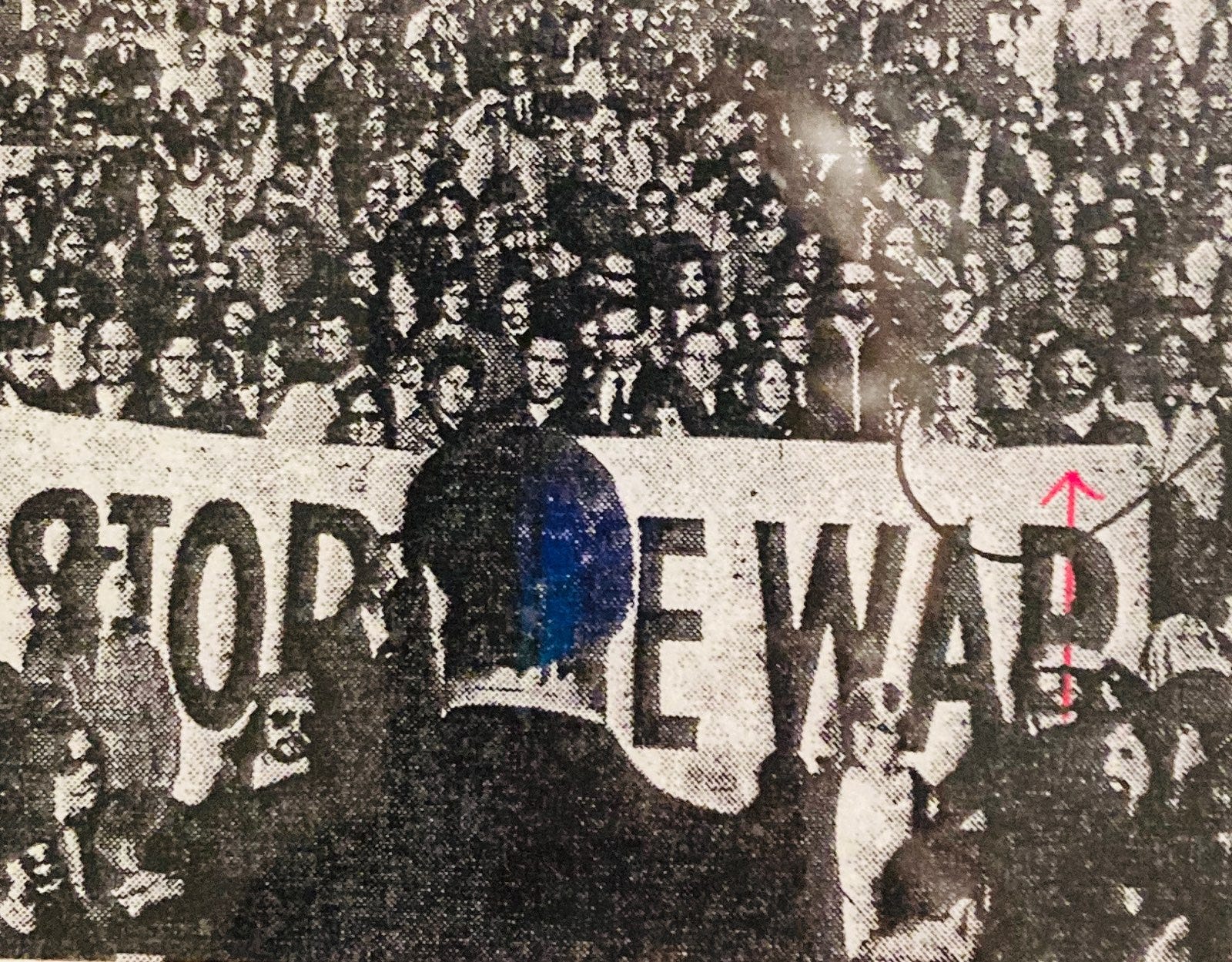 Washington, DC 1972. We began gathering on the steps of the Capitol at 6 a.m. An hour later, more than 1,000 people had arrived. There was no violence that day. Yes, that’s yours truly helping to hold the sign (see the red arrow)